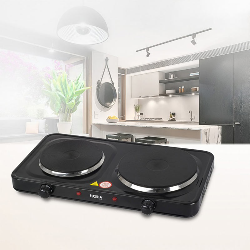 Електрически котлон с 2 горелки – черен, 44x25x7 см