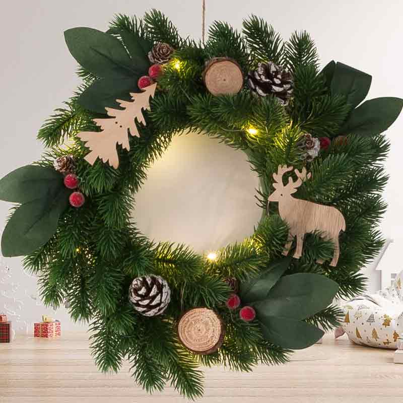 Можете да поставите венецa на входната врата, на прозорец, над камина, като централна декорация на масата или по стълбите. LED осветлението създава ефектно сияние, което допринася за празничното настроение.