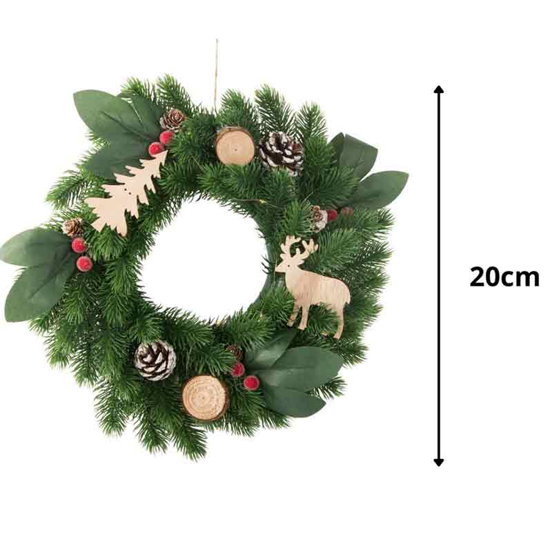 Този коледен LED венец с орнаменти е перфектната декорация за създаване на празнична атмосфера у дома. С LED осветление и естествени шишарки, венецът внася топлина и магия във всяко помещение. Подходящ е за вътрешна и външна употреба и е с лека конструкция за лесно окачване.