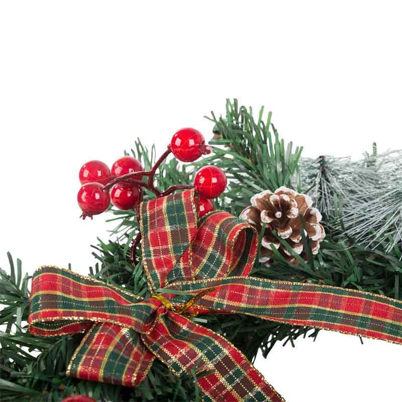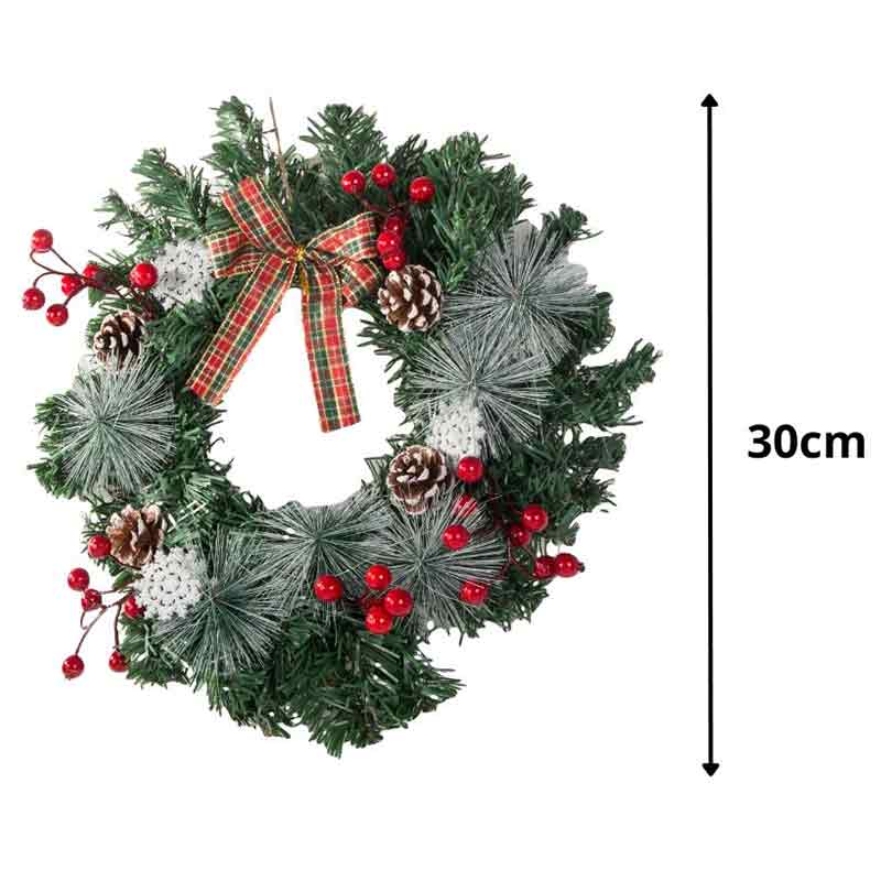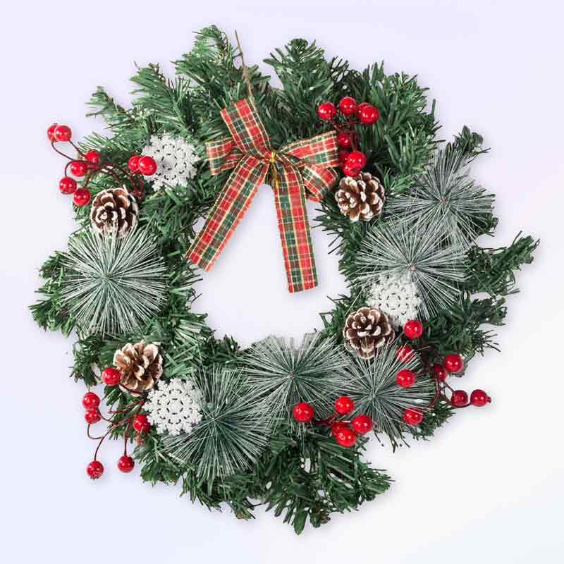 Този коледен венец с орнаменти е идеалната декорация за дома по празниците. Той създава магическа коледна атмосфера и може да бъде използван както вътре, така и отвън. Венецът е украсен с естествени шишарки и светли детайли, а леката му конструкция улеснява окачването навсякъде.