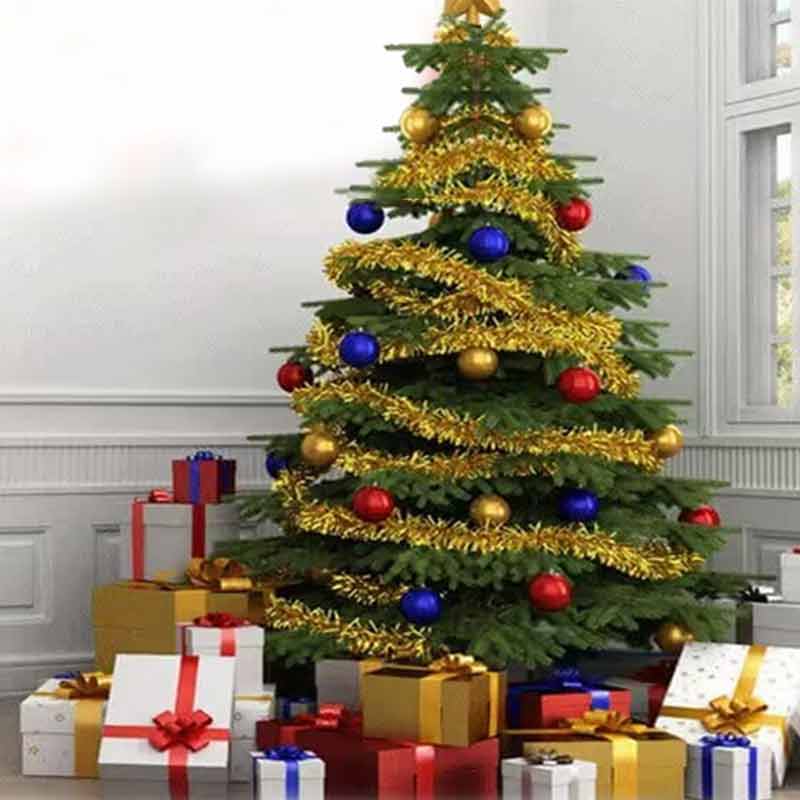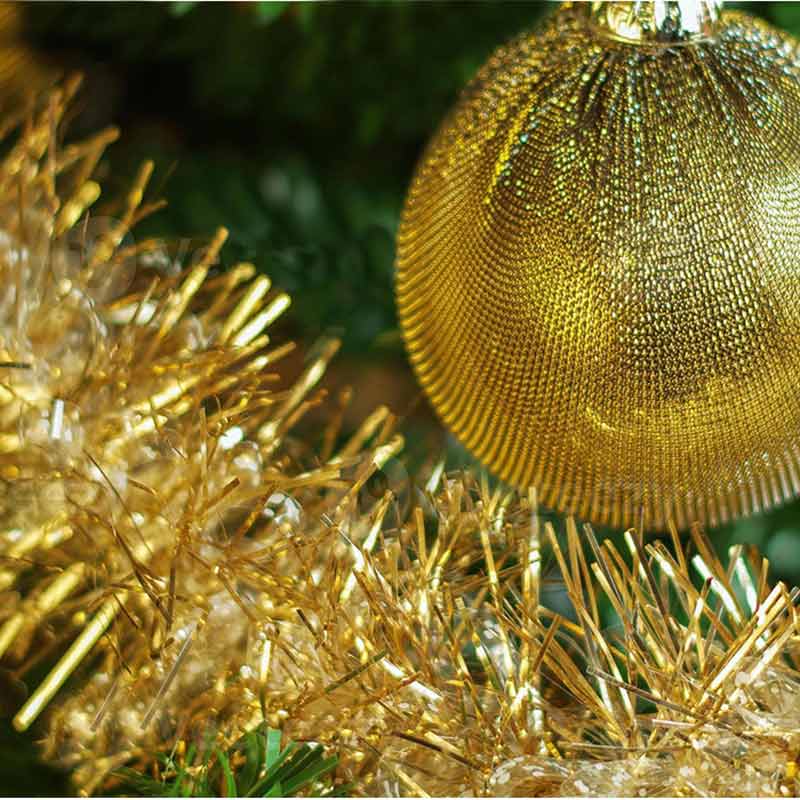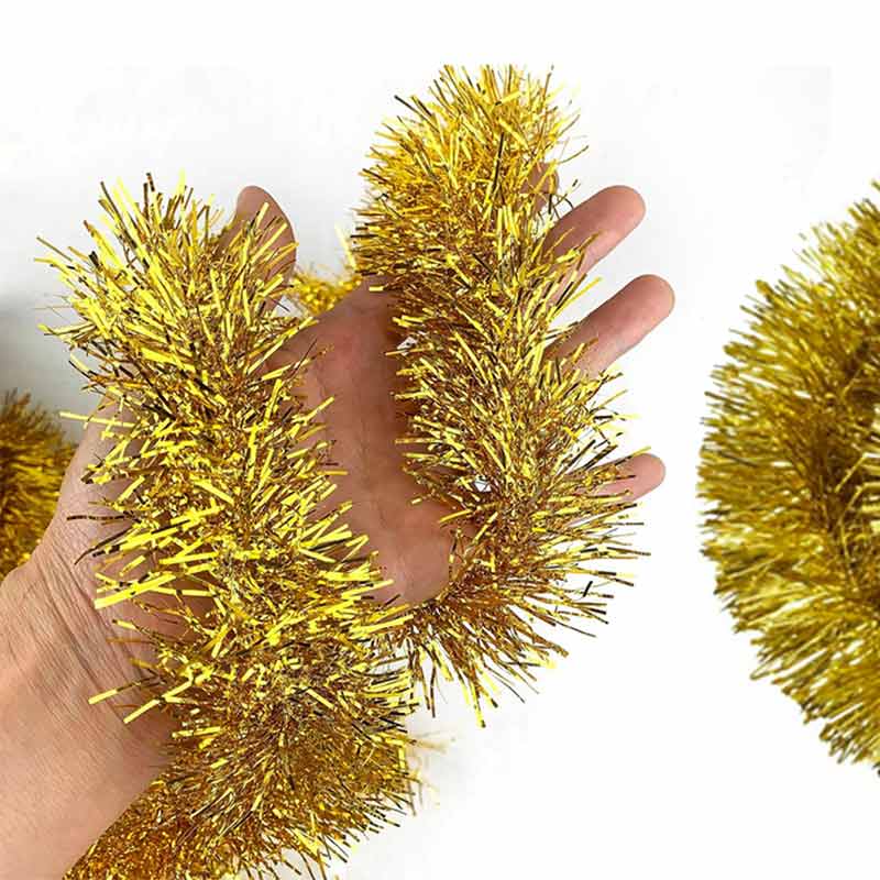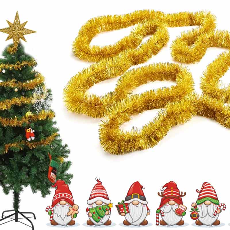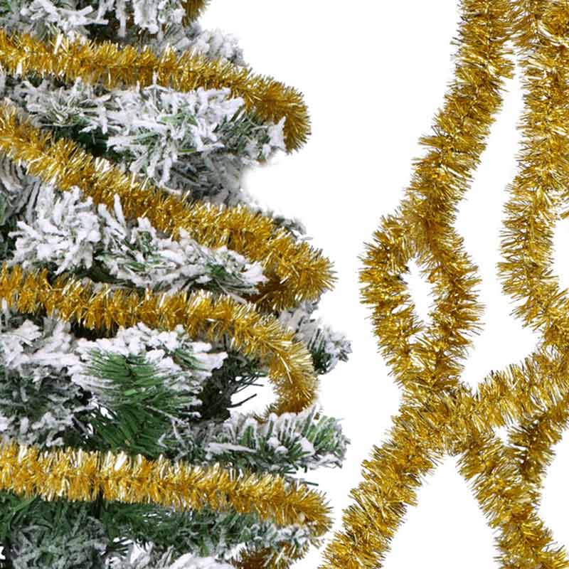 Коледната златиста гирлянда е стилна и ефектна украса, която внася празничен блясък и уют във всеки дом. Нейният топъл златен цвят подчертава красотата на елхата и допълва всяка коледна декорация, независимо дали е традиционна или модерна.