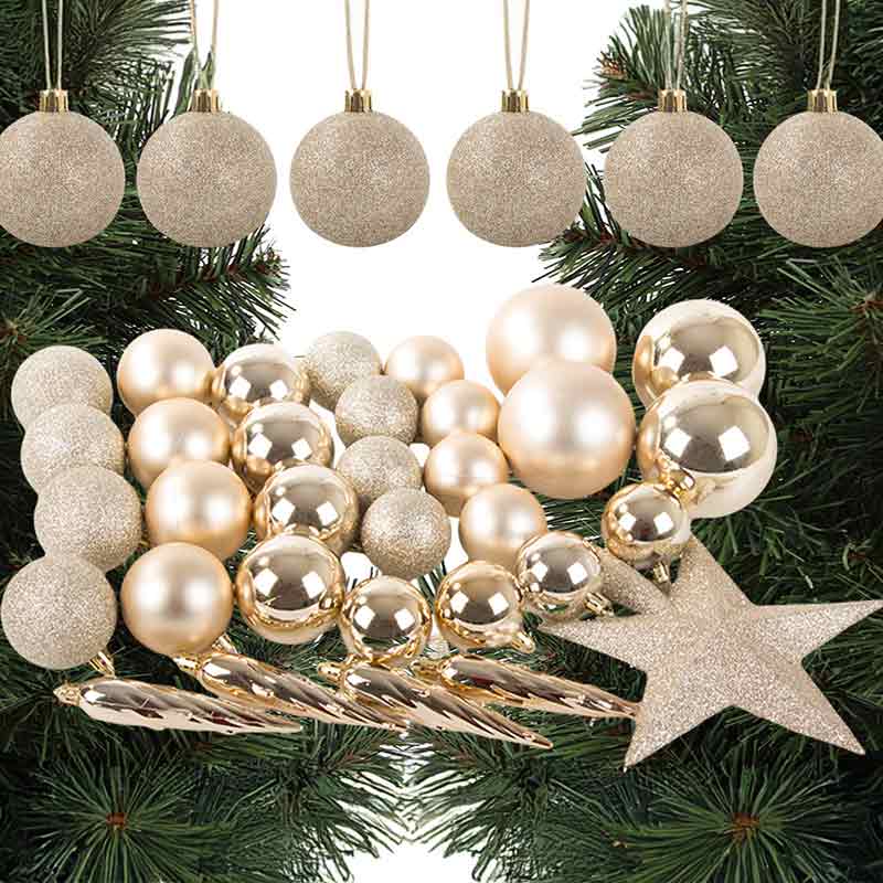 Пластмасовите топки са безопасни за деца и домашни любимци. Те са леки и лесни за окачване на гирлянди или клонки. Дори ако паднат, няма да се счупят и могат да се използват отново. Комплектът не изисква специално съхранение и е издръжлив.