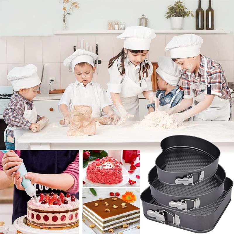 Комплектът включва три тави в различни форми – сърцевидна, кръгла и квадратна. Подходящ е за приготвяне на кексове, торти, чийзкейкове и други десерти. Разнообразието от форми ви дава свобода да създавате оригинални и впечатляващи сладкиши за всеки повод.