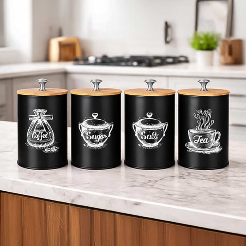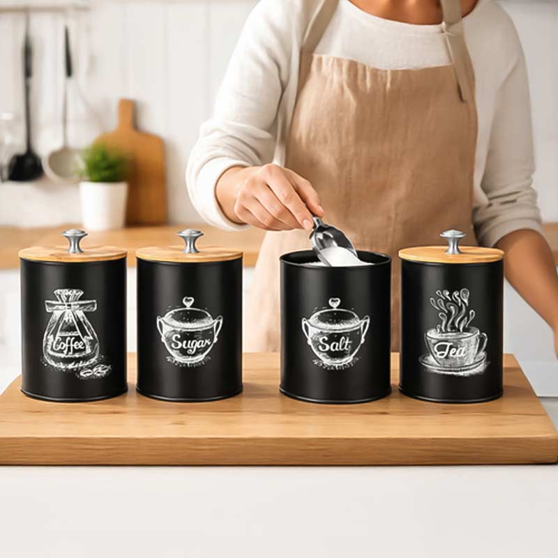 Практичен комплект кухненски кутии Ruhhy за съхранение на сухи храни. Подходящи са за кафе, чай, захар и сол.