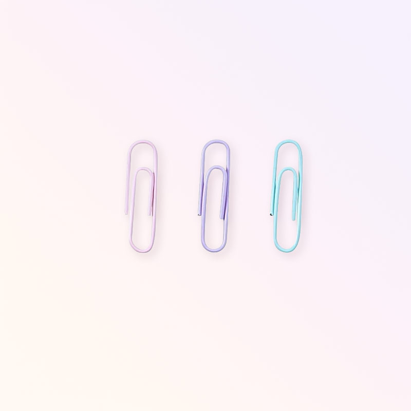 100 броя цветни кламери (размер 3), метални с цветно покритие, идеални за бърза и лесна организация на документи. Разнообразните цветове помагат за визуално разграничаване и подреждане на файлове.