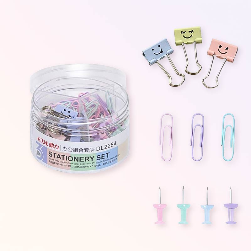 Комплектът офис аксесоари е практично и цветно решение за поддържане на ред и организация в офиса, училище или у дома. Създаден да отговори на ежедневните нужди за закрепване и подреждане на документи, този комплект съчетава функционалност и атрактивен дизайн.