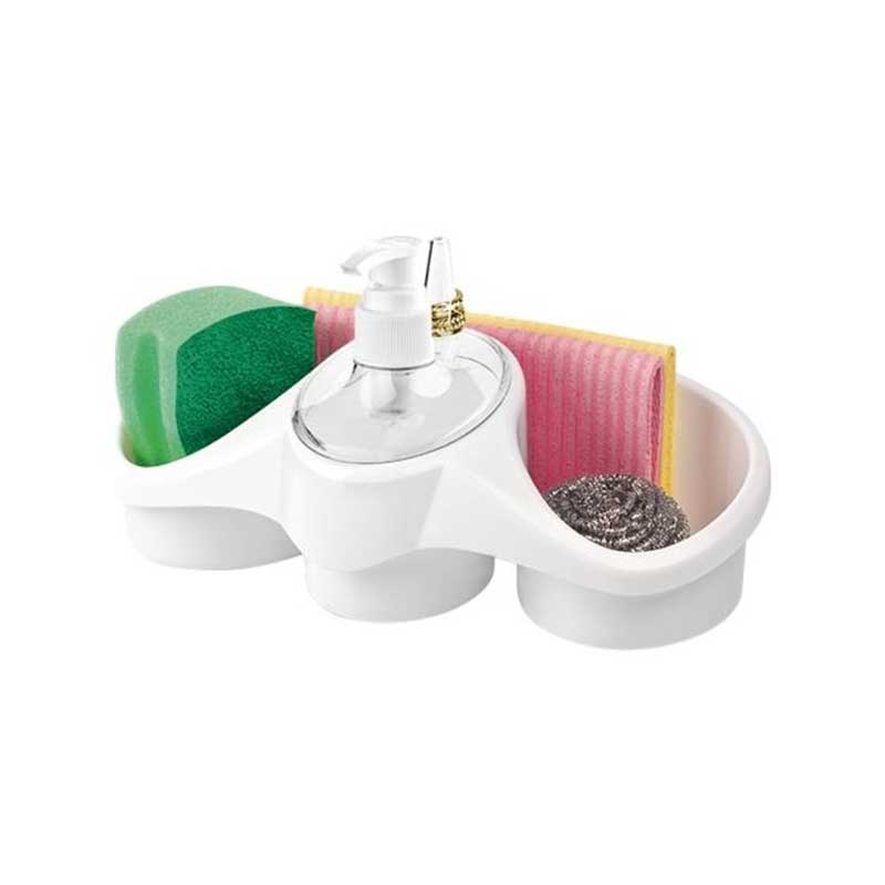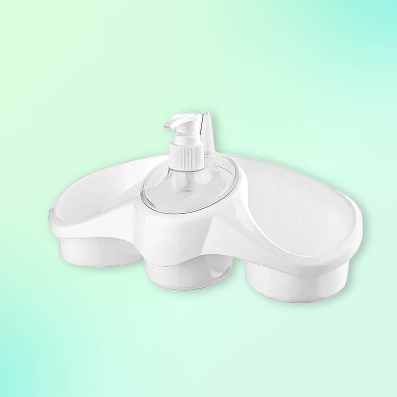 Практично и стилно решение за всяка кухня – поставка за гъба с вграден дозатор за течен сапун. С едно натискане получавате необходимото количество препарат директно върху гъбата, което прави миенето по-бързо и удобно.