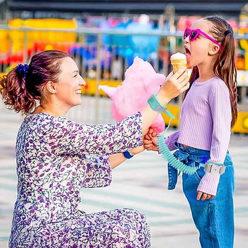 Коланът расте с детето благодарение на регулируемите ремъци и осигурява безопасност без ограничаване на свободата на движение. Еластичната връв за китката позволява повече свобода на детето, като родителят запазва пълен контрол. Универсалният дизайн и цветове правят продукта подходящ за момчета и момичета.