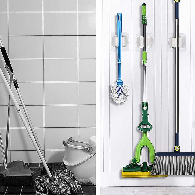 Самозалепващата поставка за метла и моп е практично решение за поддържане на ред в дома. Подходяща е за баня, кухня, килер или тераса. Позволява вертикално съхранение и освобождава ценно пространство.