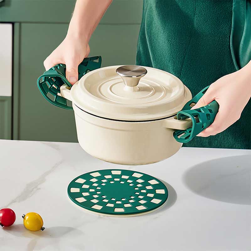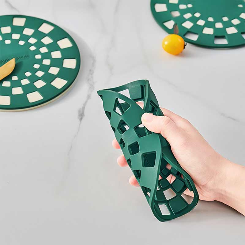 Изработена от висококачествен силикон, подложката е устойчива на висока температура, не се деформира, не се топи и не отделя миризми. Подходяща е за ежедневна употреба в кухнята и осигурява надеждна защита на повърхностите.