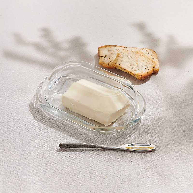 Компактният му размер го прави удобен за съхранение в хладилник, а капакът предпазва от външни миризми и замърсявания. Подходящ е не само за масло, но и за сирена или други хранителни продукти.
